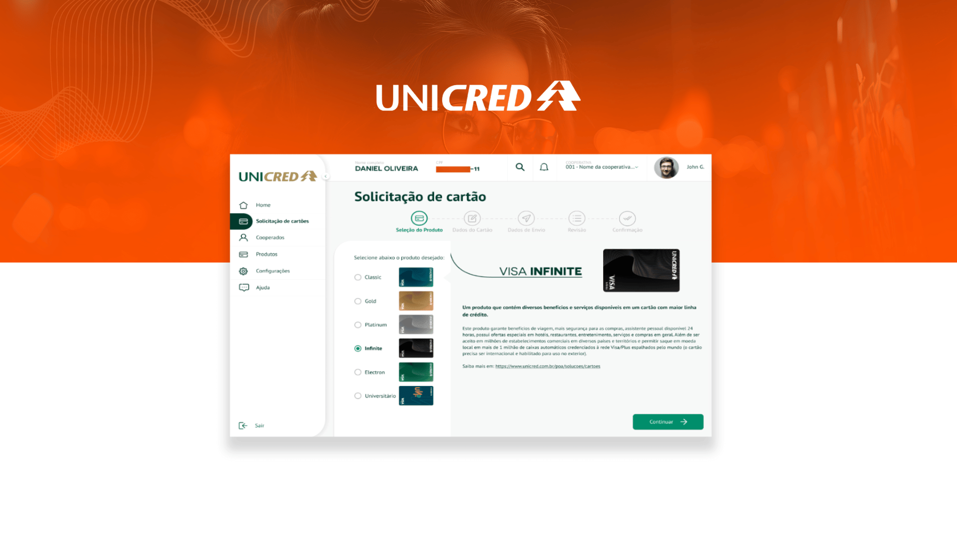 A South System, através de um modelo de outsourcing, desenvolveu o Backoffice de Cartões VISA utilizando microsserviços e infraestrutura AWS, permitindo que os gestores de contas da Unicred em todo o país solicitem e gerenciem os cartões de forma eficiente.